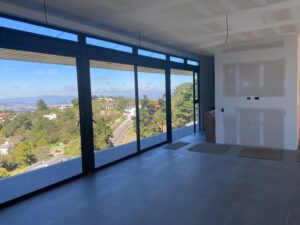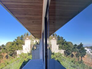 “Adaptado a un terreno inclinado, el proyecto aprovecha la topografía para abrir sus espacios hacia amplias visuales panorámicas de la Ciudad de Guatemala. La distribución arquitectónica obedece a criterios de funcionalidad y eficiencia, integrando un diseño contemporáneo que responde al contexto. El lenguaje material se compone de concreto expuesto, acero estructural y madera natural, generando una expresión sobria y coherente con el entorno.”