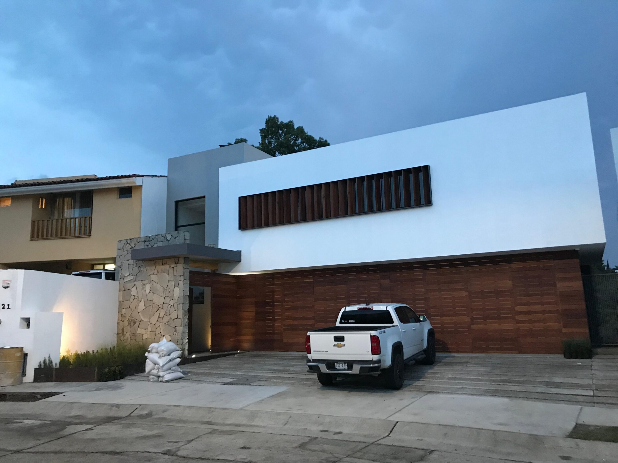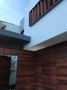“Esta vivienda se define por un lenguaje contemporáneo que combina la expresión natural de la madera, el acero y la piedra, integrándose con sobriedad en su entorno. Su diseño responde cuidadosamente a la incidencia solar mediante el uso de parteluces y una composición volumétrica que controla la luz y las sombras a lo largo del día. La materialidad expuesta enfatiza la honestidad constructiva del conjunto, mientras la organización espacial promueve una relación equilibrada entre interior y exterior. El resultado es una arquitectura funcional y atemporal que privilegia el confort, la eficiencia y la conexión con su contexto.”